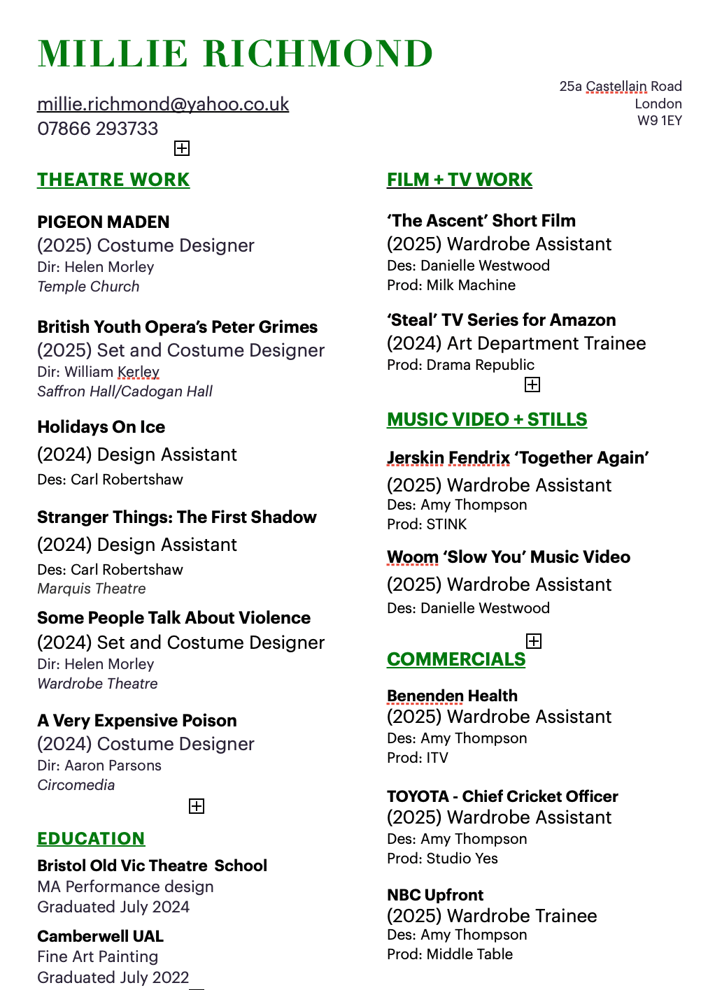 Millie Richmond CV